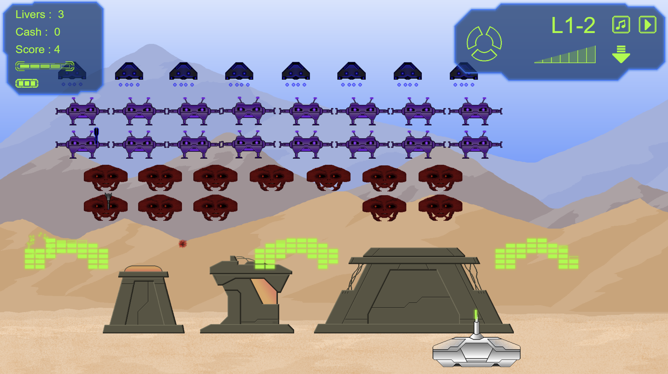 Both versions are out. There are the free versions, which are the demos which are on the Construct arcade. Then there's the full versions, which are still growing that's on the itch.io site. This Star CAO game you can get out of the vehicle and move around, can upgrade the vehicle, and there's a drop down menu to the right where you can use items to help fight against the invasion.