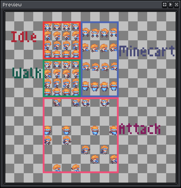 I was partway through a big overhaul to make characters customisable, with simpler animations, and stuff like universal animations for tools.