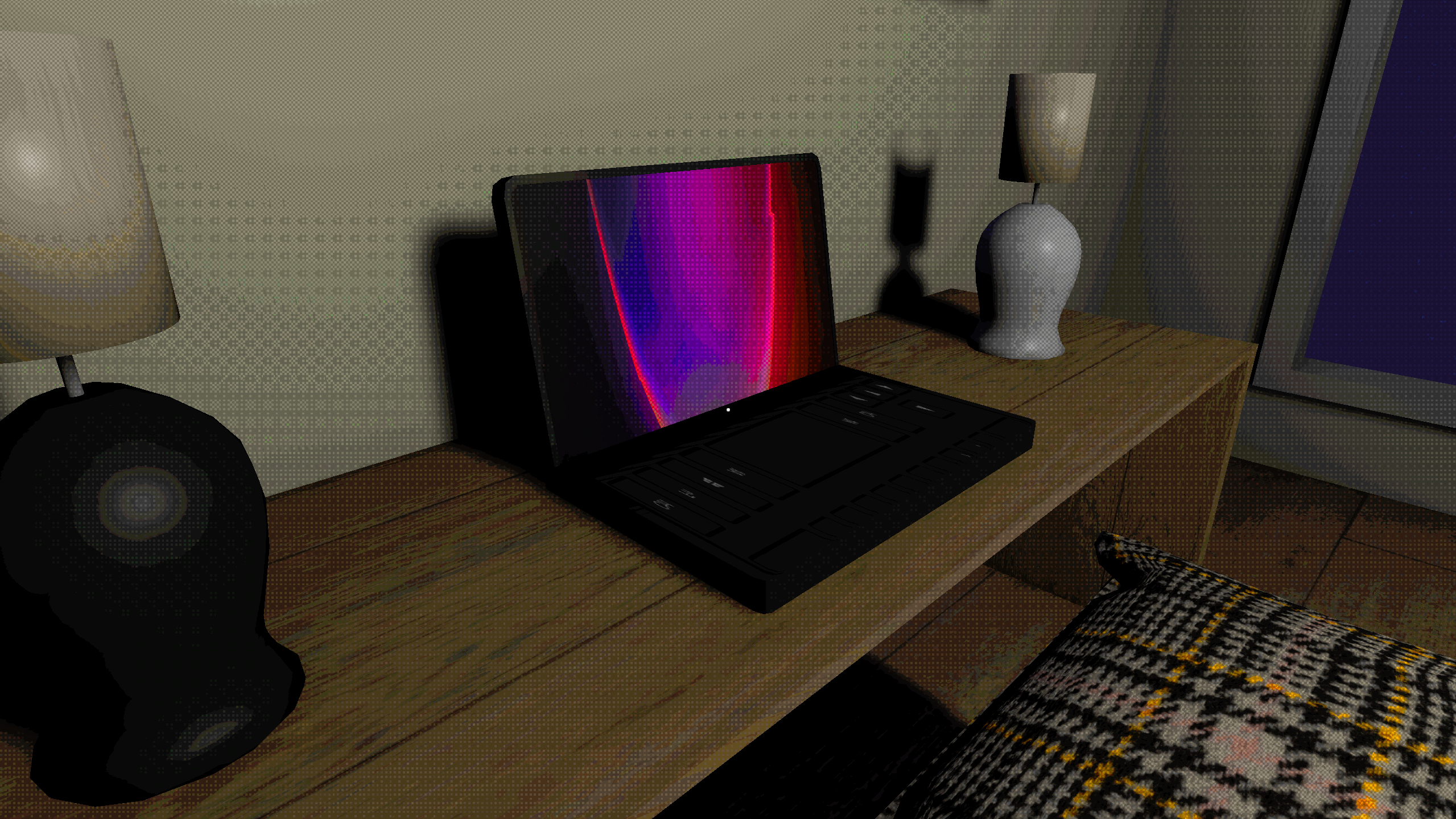 really cool art style. I really like the colors you used and also the dithering in your artwork. The atmosphere is strange. Me opening all the bathroom doors is really strange...