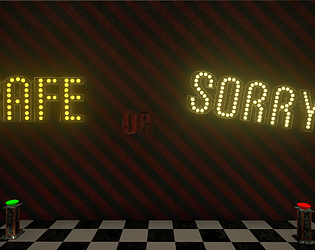 Hey guys, I'm taking a break for a couple of months from my main project to flesh out my Ludum Dare 34 entry into a short game. Safe or Sorry is a competitive survival horror game where you are put in a room with two buttons. One is marked "Safe", which ends the game and gets you out of there and the other is marked "Sorry" which awards you points but makes the game a little more difficult every time you press it. You can download my Ludum Dare entry for free here: http://jimmothysanchez.itch.io/safe-or-sorry