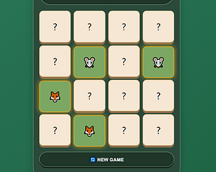 Classic memory matching game with flip animations, move counter, timer, and victory detection.