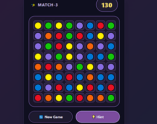 Complete match-3 puzzle engine with drag/click swapping, match detection, gravity fill, and combo scoring.