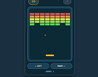 Classic brick breaker game with paddle physics, ball collision, and progressive difficulty.