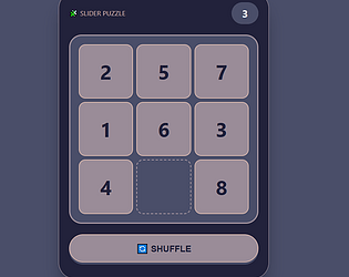 Classic 3x3 sliding puzzle with move tracking and shuffle functionality.