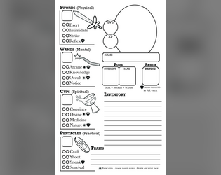 TarotWeaver is a small indie TTRPG taking inspiration from games like Whitehack, His Majesty the Worm, Dungeon World, and more. A classless game, character creation takes only a few minutes and gameplay is fun and intuitive. |