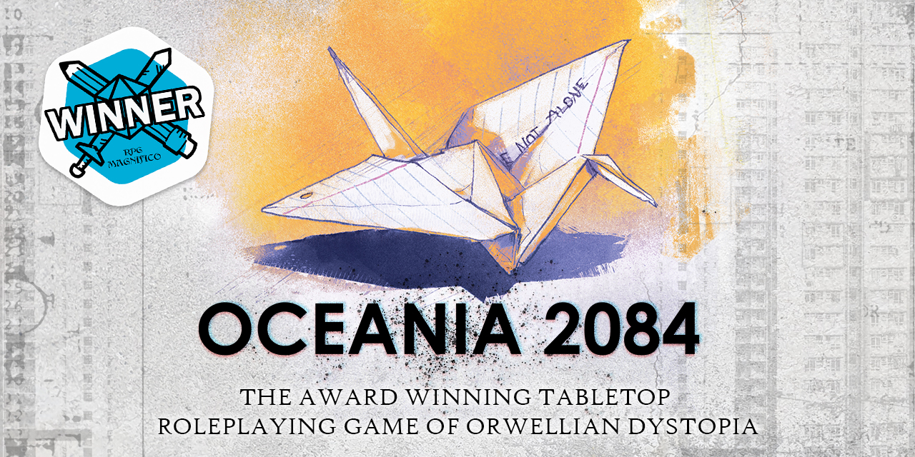 Oceania 2084 is a tabletop roleplaying game heavily inspired by the book 1984 by George Orwell. It is designed around the question "How can I make a dystopia engaging?". It is an original system that finds its strength in asymmetrical and adversarial gameplay, where a group of players play as resistance characters and one player embodies Big Brother, that is the state, the surveillance, and the Thought Police.