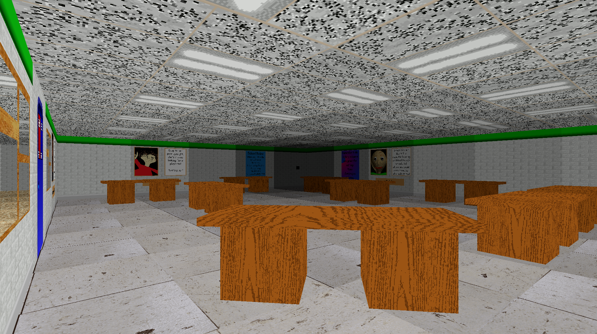Yeah, the swinging doors are planned to get redesigned as well at some point like the classroom doors are to have rounded edges and the other visual improvements, though for now, the swinging door design from BFNS Remastered is used in the test floor and it might stay that way since the test floor uses some placeholder assets to make sure the mechanics work like opening/closing the redone doors, but in regular floors and the main menu the redesigned versions of swinging doors are planned to be used, along with other redesigned doors like for the faculty and principal's office doors.