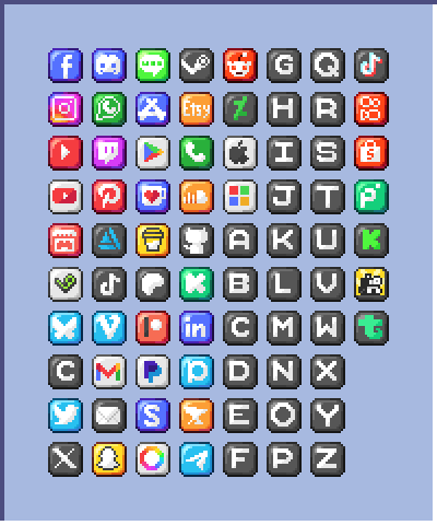 Hello. I decided to create social media as a separate pack. Here is the link to it (it's free) FREE Pixel Art Social Media Icon by JOI3