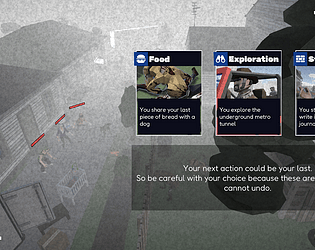 At the aesthetic level super well, the only thing would be the walking animation that is a little rough. But otherwise visually excellent. At the gameplay level I really liked the many small details that were added to make it easy to know where the zombies were and also to be guided by sounds. The only thing I could criticize is that this type of game requires movement up and down and not having it the attack was a little uncomfortable. Also I would have liked background music because otherwise this type of game gets repetitive very quickly. Otherwise, an excellent game, well done.