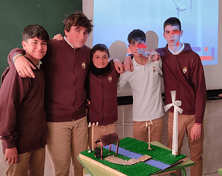 El proyecto es un molino eólico, el cual está conectado mediante cables a una casa y le da energía.