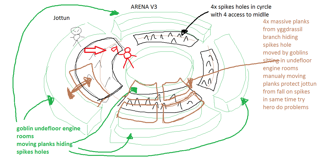 Captain log, star date 2.2.26 -30 Arena got new mechanic added. ! :) I learn a lot of new :P Now is Jottun bit harder to kill unfortunatly :) Also I discovered 2 small bugs and fixed it during testing pass level 1 to 3. Now I has to finish some details around new mechanic (but it takes only 1 more hour) and after it I has to look bit on Jottun, he is moving bit bad. So I spend some more time in Arena, but because of Jottun. After it I guess I do one more thing in level III (pub) and I will be done with level III for this update. This all takes some time I guess. I has so much plan for this update still....I got before me also some more work on fixing bugs on igdrassil, One more new level III skill and also I has to add something new to level IV.