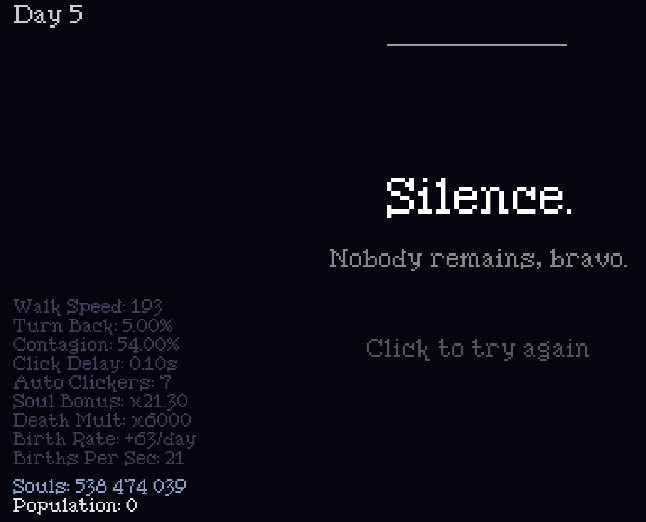 a bit more variety in mechanics and the difficulty doesnnot curve at all, just a straight line to finish, which isn't satisfying. Feels like you can sorta win at day 3 in a reasonable timeframe.
