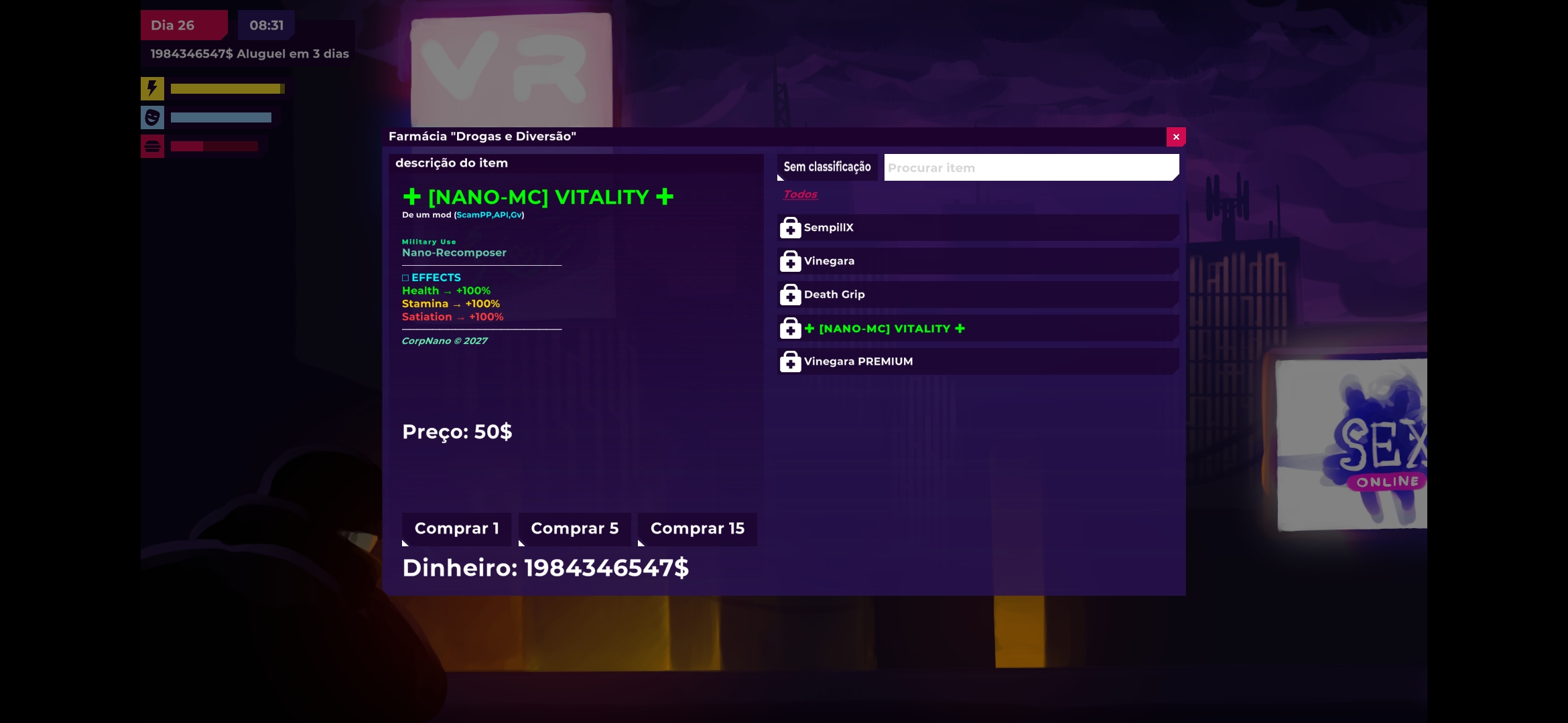 gv.vinegaraEffectEnd (±Time): Duration of the "Vinegara" effect. While active, it forces the player to have an erection.