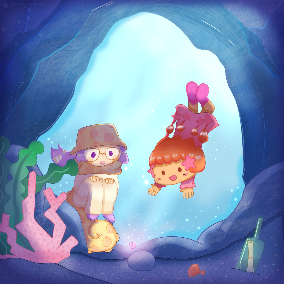 My style is generally on the simpler and more cutesy side. Given the tight nature of a game jam I'm more comfortable adopting a more chibi approach to characters, please refer to this part of my portfolio for reference: https://justrainysunshines.carrd.co/#comms .