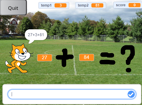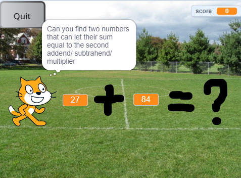 Example: I choose to play addition. It shows me that I need to think up two numbers that can make their sum equal to 84. After thinking, I want to use 3 and 81, because 3+81 = 84, this is an integer which will make the formula become one easier integer plus another smaller number. Then the formula is transformed from (27+84) to (27+3+81). Then I got the answer 111. Although it becomes a two-step calculation, it becomes easier to get the answer.