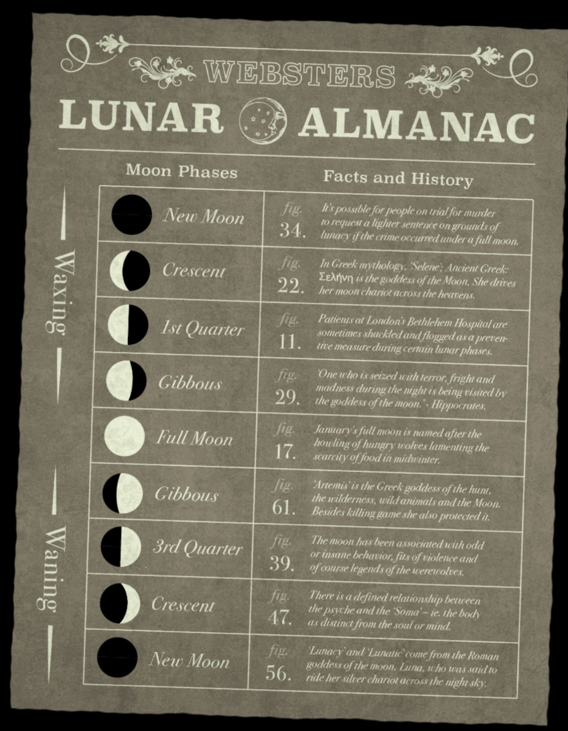 Not sure if this little markdown thingy will work, but the Lunar Almanac is incorrect. The moon’s shadow actually moves from Right to Left, not left to right as shown in the game.