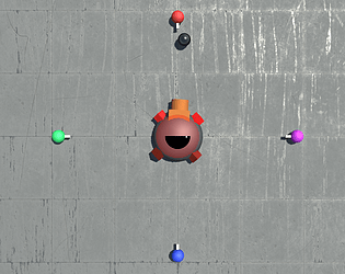 Since the 360 is already confusing for most people, maybe the guns being to the side is too confusing? also not sure what to do when youre left with the blue guys. also having infinite range is probably too strong