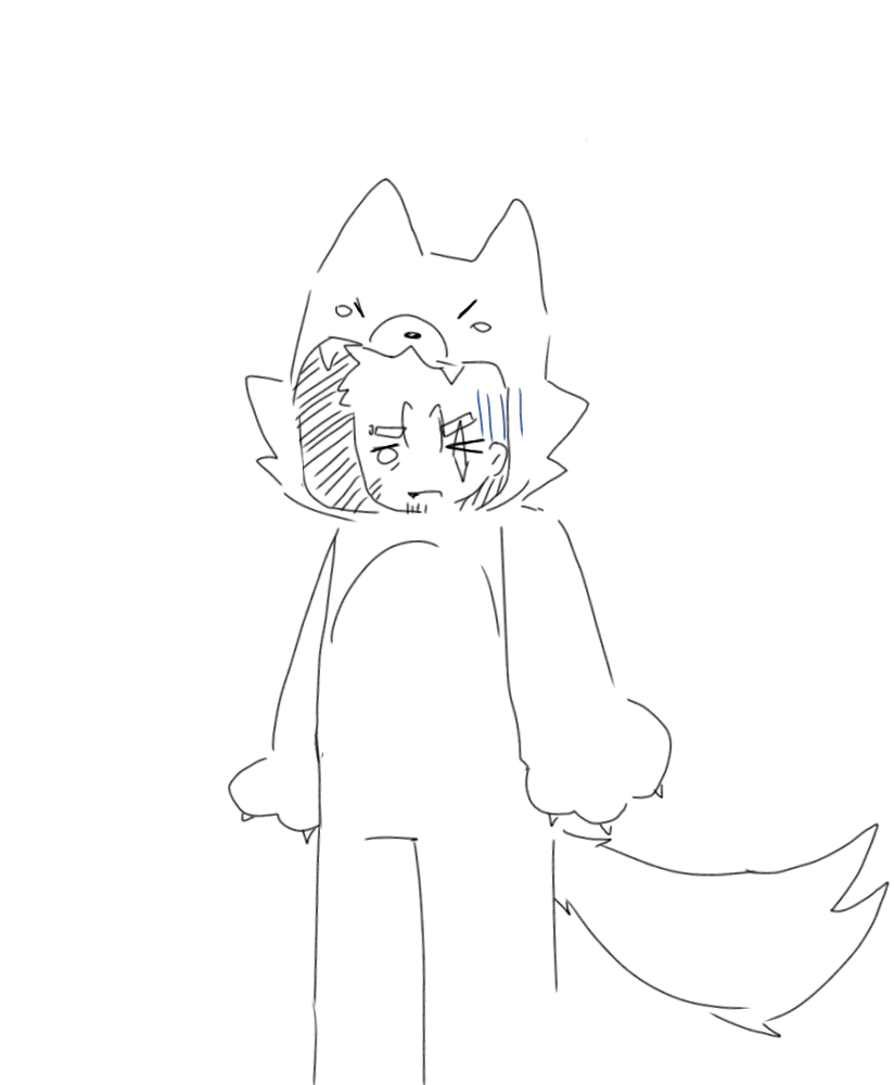 He looks like this! His name is Yuki (the artist is my awesome friend LuluXRouge) as for the color scheme he has pale skin with blue eyes and his hair, well black lol- i don't have a colored version of him yet sadly but this is the best art i have of him!!! Still THANK YOU REALLY I DIDN'T EXPECT A REPLY :'] (here's another one with a wolf suit cuz he's funny like that)