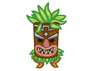 It will allow you to collect resources, and then switch his mask to pink to make him collect items. Once you have some resources, you can click on the small totems to buy or upgrade small characters with masks of each color.