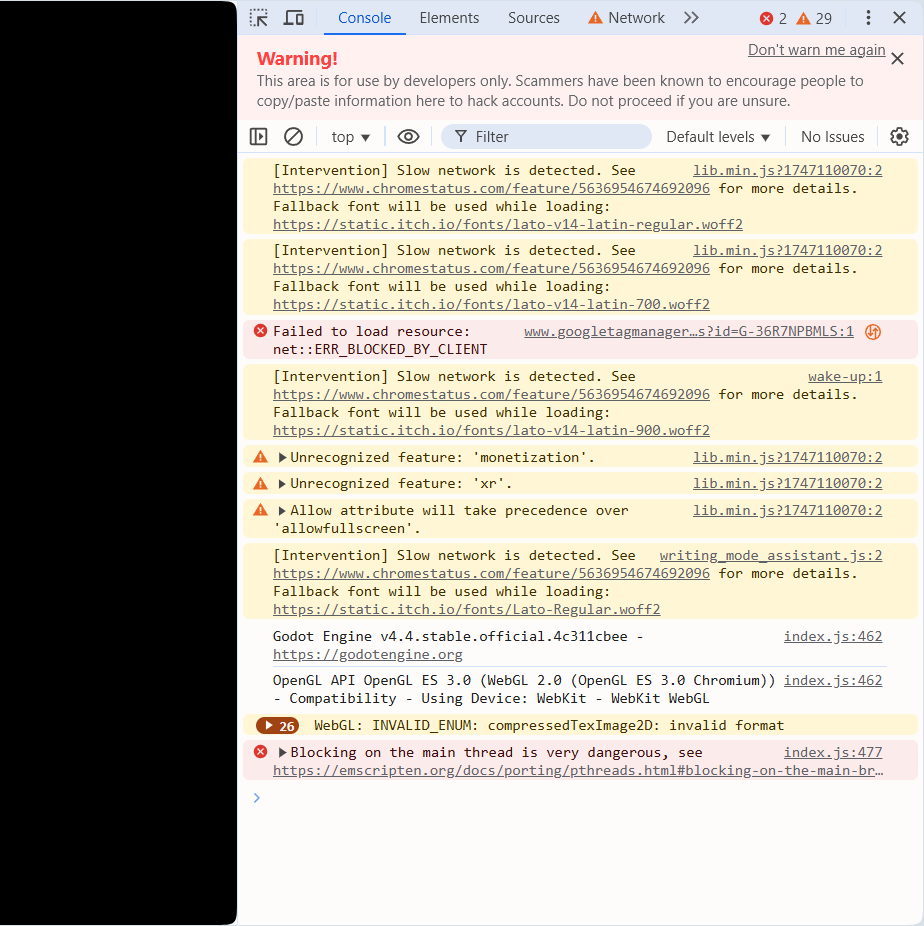 It was my bad, i used my work PC with old ass win7 and Opera that is couple of years without updates. Changed to win10 + Opera and everything worked fine. Nice graphics and the idea) Don't know why i just though about this, but putting the caterpillar in to western setting and giving it bunch of small revolvers, plus corresponding music, sounds bad ass)