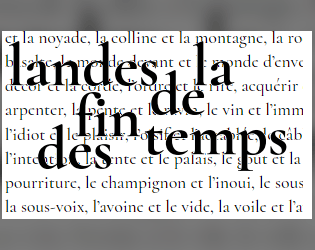 Merci pour ton retour ! Oui, le jeu n'est pas bien mis en page, mais je n'ai plus ni envie d'y toucher ni de le voir se développer autrement, même dans les mains de quelqu'un d'autre. I'm done with it, et tu as raison, ça fait en quelque sorte partie de son côté inachevé.
