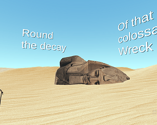 Osiris looks on at a bust of Ramses II half-buried in the desert sands.