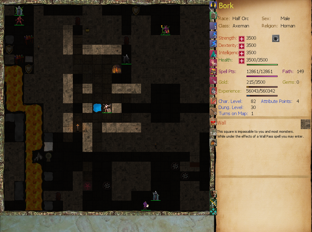 Using Portal you can stay in the 10-15 dungeon level range and build up your skills, stats and spells. Once you get stronger and find some anti-death protection you can cruise in the 20-25 dungeon level range which is the sweet spot for leveling and obtaining items without too much danger.