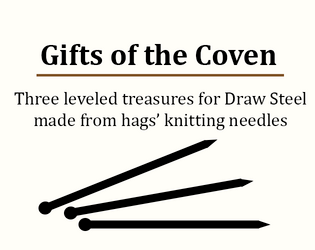 A set of three levelled treasures for Draw Steel, made as part of JotT #1