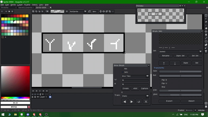 UI is buggy may be because of the version u using the aseprite , and make sure u make the proper selection grid.
