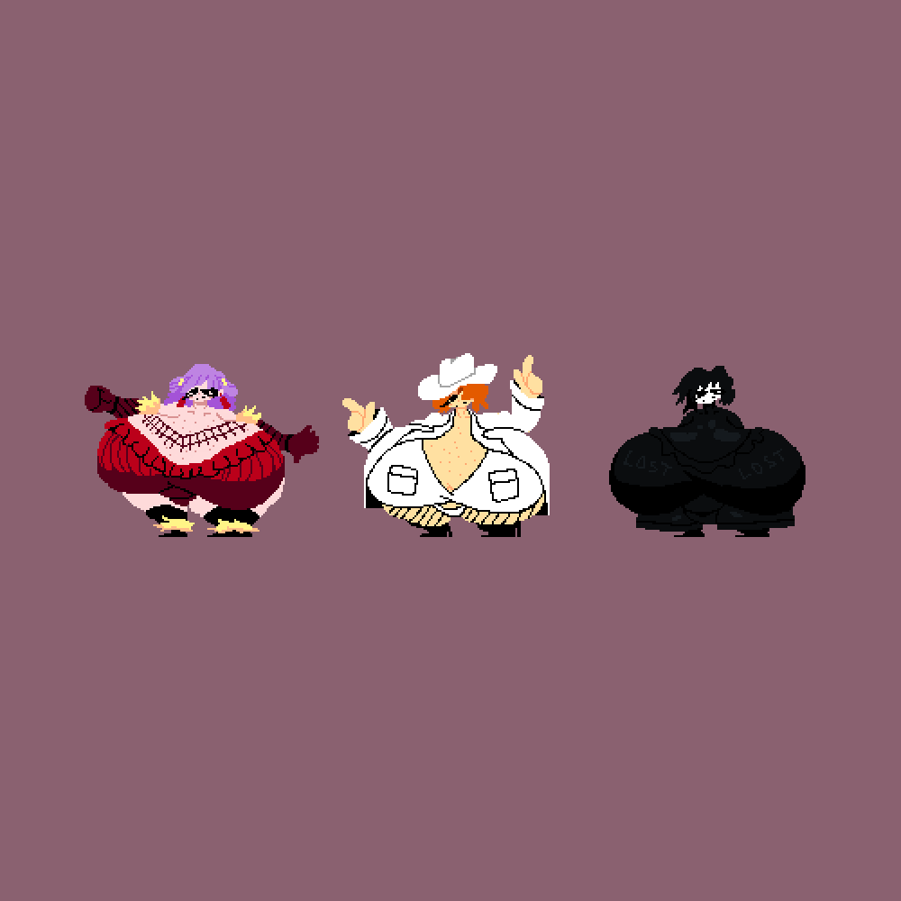 I slightly altered their designs. I tried to go for the standard like-- cowgirl design for the girl in the middle, with like the jean shorts-- but it didn't quite sit right with me, so I just went with the buster scruggs look.