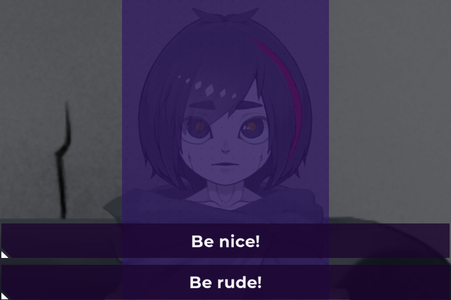 Choosing "Be nice" will give her 5 Sympathy.