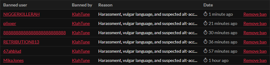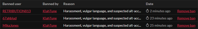 The original ban was issued due to hostile behavior, repeated insults toward other users, and disruptive conduct within the community. Instead of accepting the consequences of those actions, the user chose to repeatedly create new accounts to evade the ban and continue harassment.