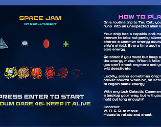 Ha ha. Is that Yoda in trying to master the Force? Nice twist on the Flappy Bird concept while still matching the theme of the jam, I thought. Has a nice one more go factor to it. The best strategy is apparently to button mash the CTRL on the left and right side of the keyboard so that the ball stays on the top of the screen and letting go for a split second only if a bird appears on that part of the screen. 3600 is my high score. There is not a whole lot to do though so the novelty soon wears off. Perhaps make the screen not so static and add some strategy to the CTRL mashing aspect?