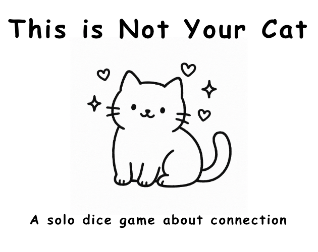 I’m thrilled to share my first solo game: This Is Not Your Cat, a gentle, pocket-sized RPG about earning the trust of a cat who is absolutely not yours.
