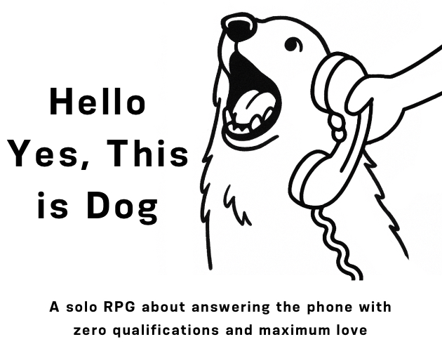 I wanted to make something short, sweet, and just a little absurd—something that felt like the loyal confusion of a dog answering a ringing phone. From that spark came Hello, Yes, This Is Dog: a mini solo RPG where you, a very good dog, pick up the phone and do your absolute best.
