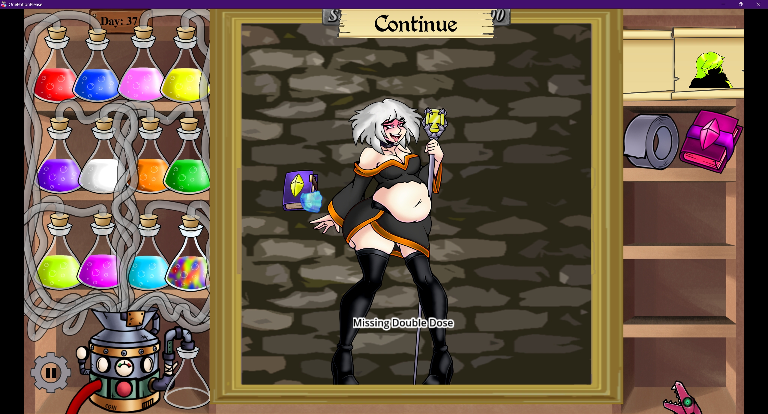Found a bug in Endless Mode where if you get far enough that characters are showing up with the maximum boob size, giving them another boob potion makes their boobs disappear completely. I also found that in Sandbox Mode, the BoobScale slider doesn't work on the mage's floating boobs held up by magic hands, and the Belly and Glasses settings don't save on custom characters. Also, the pointy ears toggle still shows the normal ears underneath them on some hairstyles, like so.