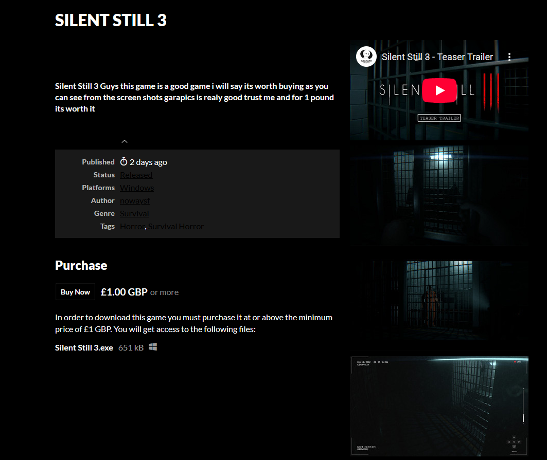 Loved the atmosphere, sound design, and pacing — everything feels really tense and immersive. For the demo, I’d suggest skipping the section before the family goes missing and adding more content in its place; you could keep that beginning for the full game to make it a stronger hook. Fantastic work so far!