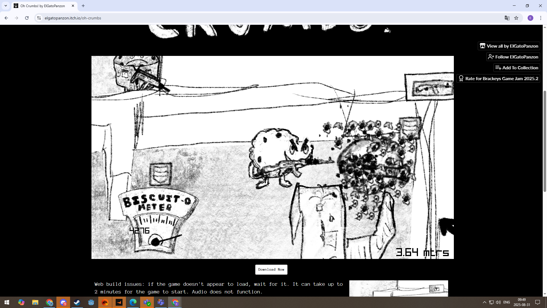 Sorry you had to play with the mouse unlocked, having tried it it is nearly unplayable. I noticed that in the microsoft edge browser weirdly it wouldn't work (pressing L to lock the mouse). But everytime I tried with Google Chrome it would work. Thank you for playing my game! Glad you enjoyed it even with this flaw.