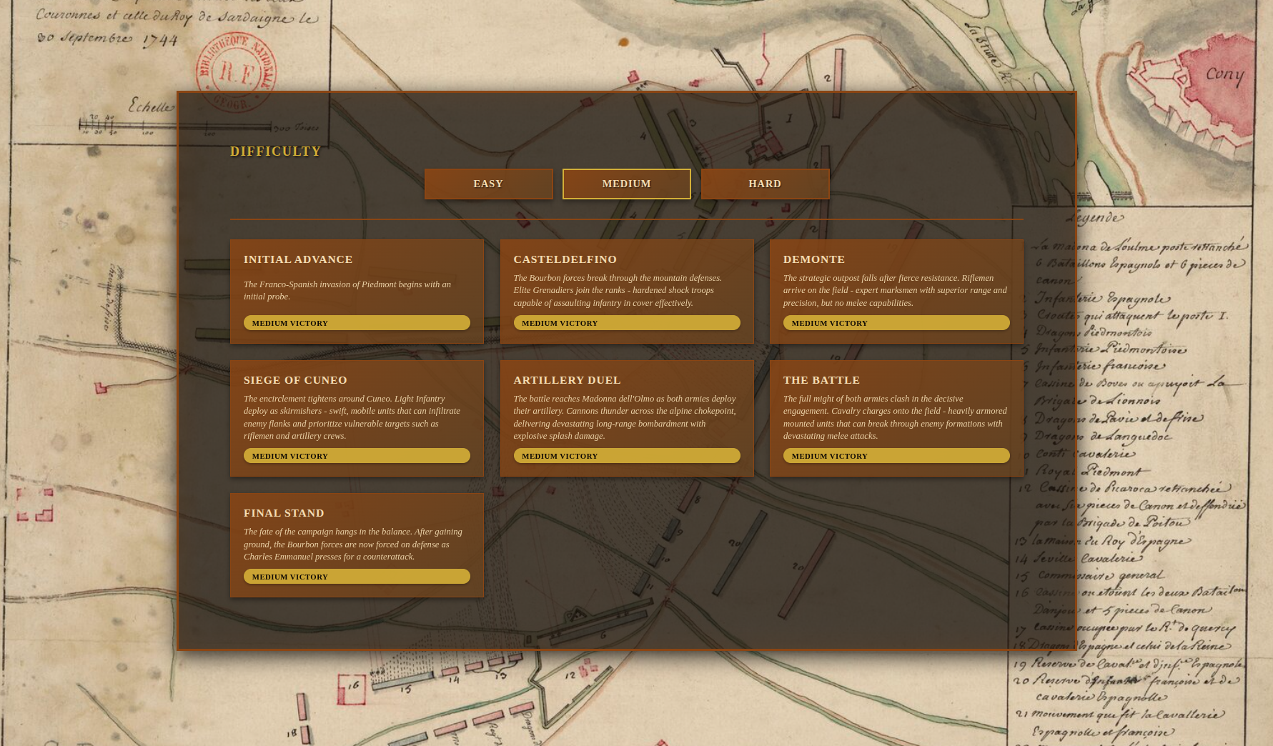 • 7 Historical Scenarios - Experience the campaign from initial advance to final stand against the Piedmont-Sardinese counterattack.