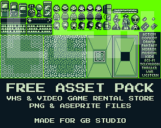 Pixel-perfect 8-bit sprites, tiles, and VHS-themed props for retro game projects. Free with optional donation!
