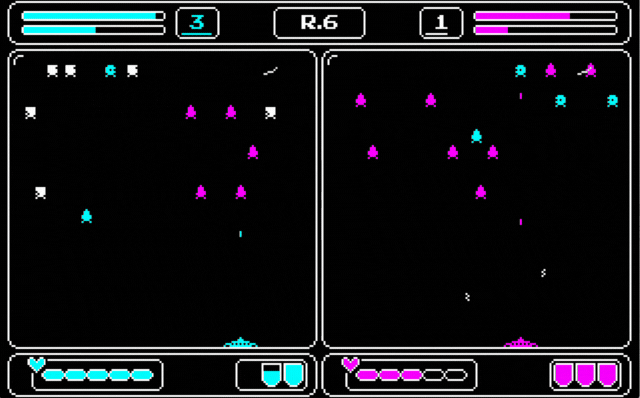 A split-screen retro arcade shoot 'em up for 1 or 2 players