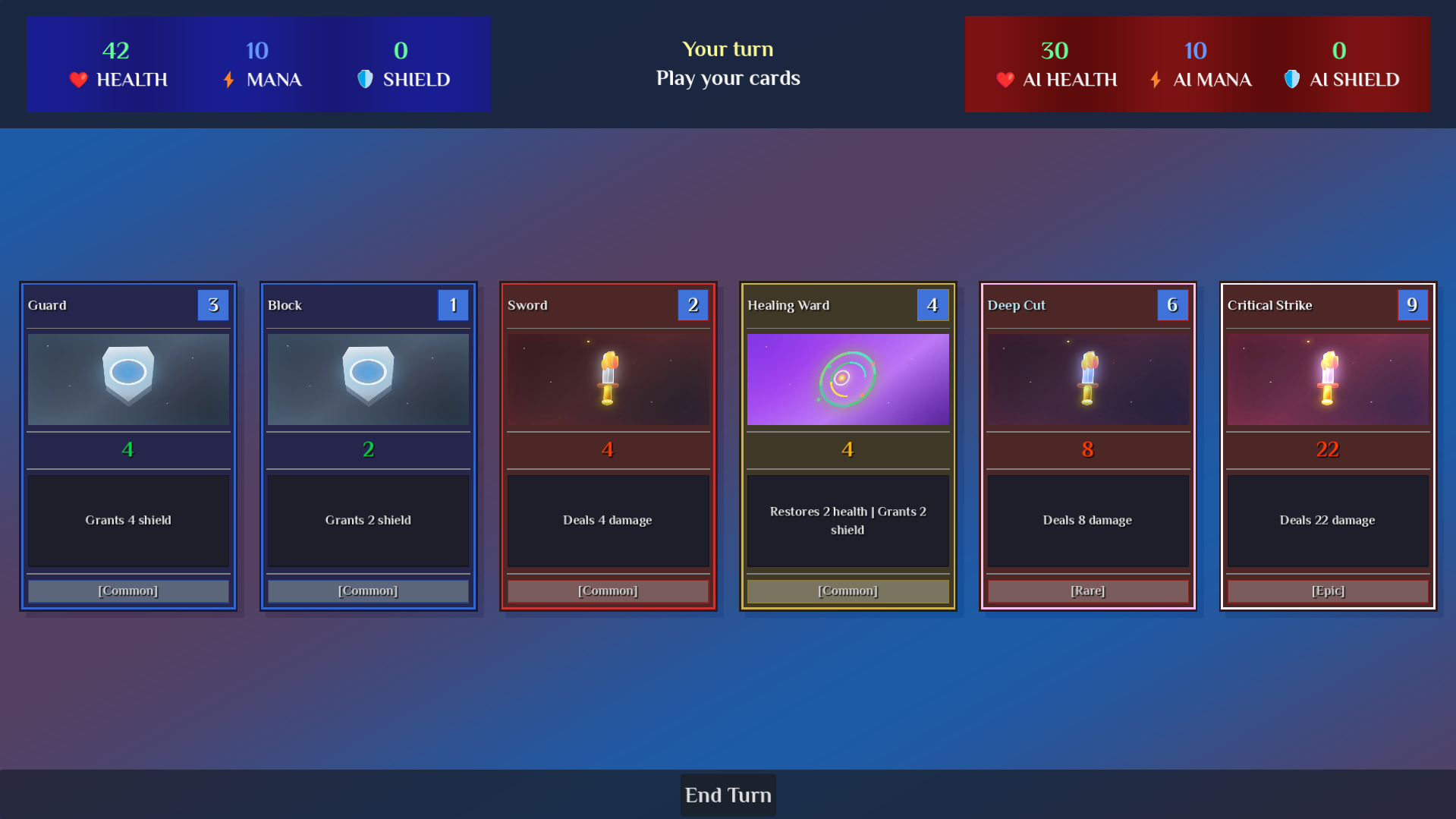 ✔ 55 unique cards – Craft your deck with attacks, heals, shields, and hybrids.