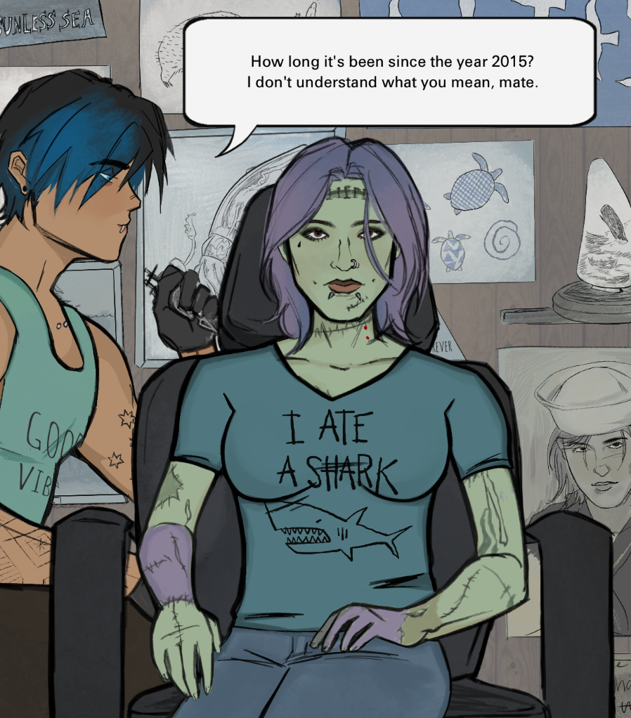 Patricia in a parallel world where almost everything is out of sweets. There is also a hungry Wendigo.
