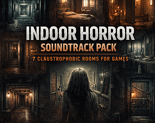 A cinematic indoor horror soundtrack pack featuring 7 claustrophobic room-based atmospheres for games.