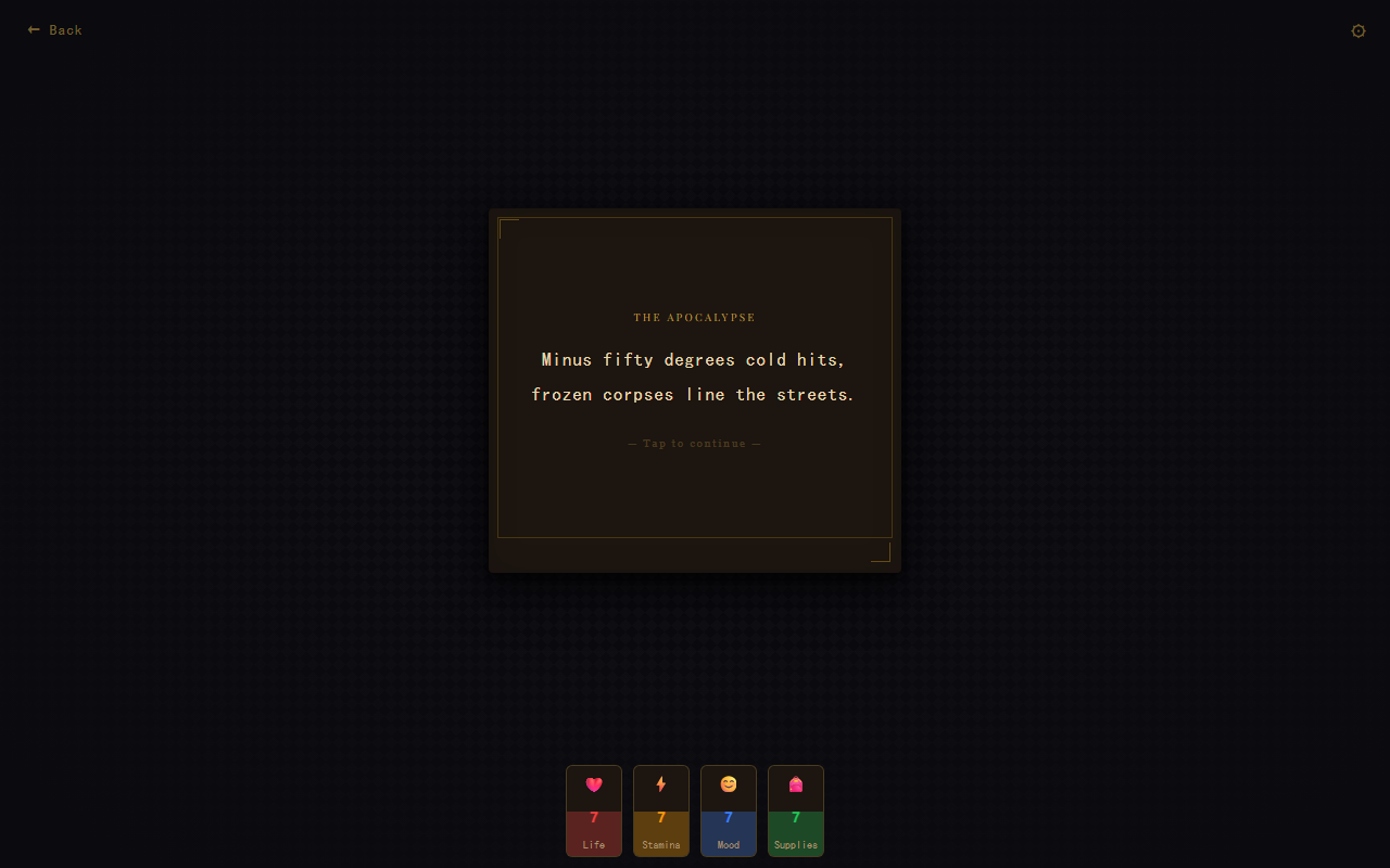 - Survival storytelling — balance your resources or face a bad ending