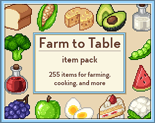 This is a companion to my other asset pack and includes 20 crops with (usually) six stages of growth, including variant crop versions to match the ones in the Farm to Table Item Pack. These sprites are intended for a 32px tile size.