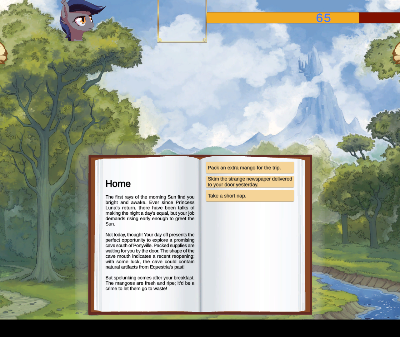 The style is consistent, although there were some weird stripes in the room. It's definitely not a hardware issue, as Twilie is rendered normally over the stripes. Completely failed to figure out how to distinguish fake ponies, other than catching them on typos like “Flutterguy” instead of “Fluttershy”. I made ten attempts, but didn't make it past the second level. The game is difficult, but interesting. Especially want to praise for the opening video and animation of the loss if you leave the room in which there was a fake pony.