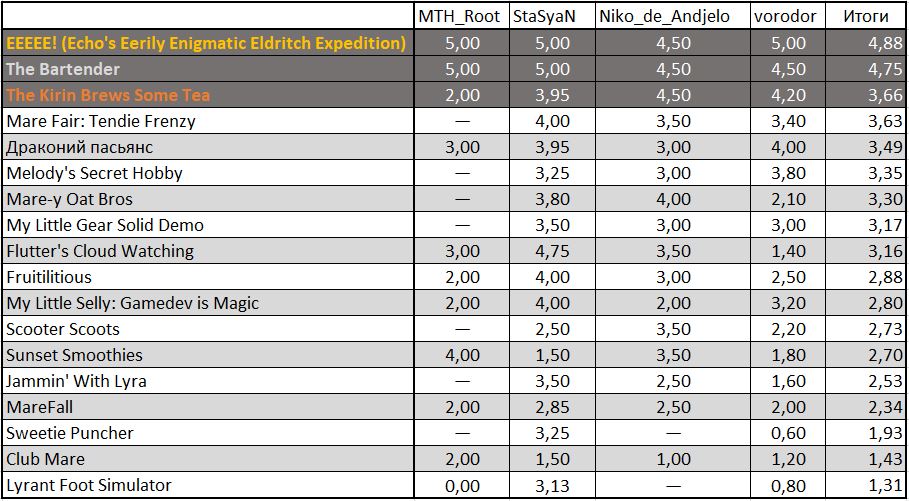 Tabun is russian-speaking brony site and I made a post for that game jam. By simple voting system, people decided that your game was the best. So congratulations and thank you for the game!