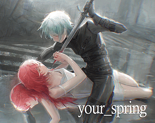 your_spring is an immersive visual novel, set in a post apocalyptic world, and tells the story of two characters, as intertwined as they are doomed by fate. It explores the concept of reliving memories of a foreign, yet familiar body and blurring them with another's past and one's own.