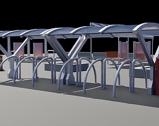 set of lamp post, a trash can and a bench for your weary characters out on the streets